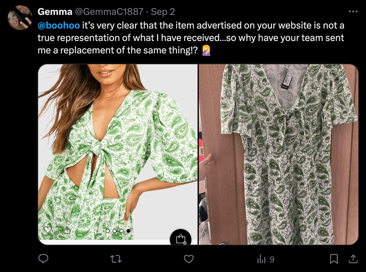 And then there’s the issue of who covers the shipping costs. While Boohoo offers free returns in some countries, others are left footing the bill to send items back, which can add up quickly and make returning something almost not worth the hassle. With customer service that’s not always responsive, the refund process can drag on, leaving shoppers frustrated.