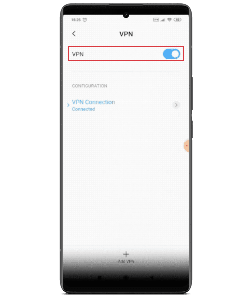 Turn off the VPN on your Android phone by heading to Settings, and tapping VPN
