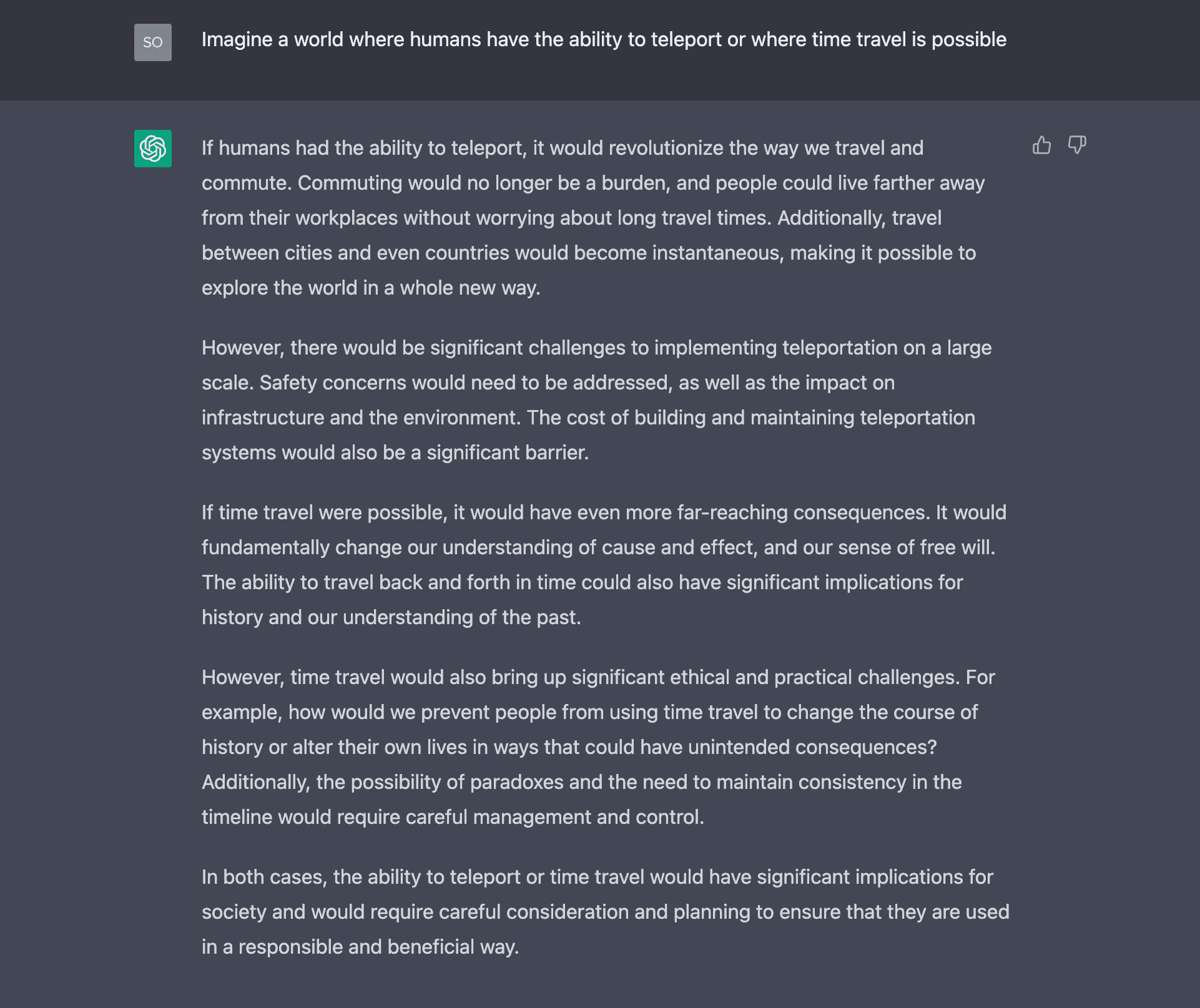 ChatGPT kann ein wertvolles Tool sein, wenn man „Was-wäre-wenn“-Fragen stellt, indem es hypothetische Szenarien generiert, die auf Ihren Eingaben basieren.