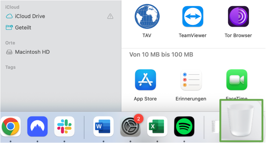 3. Leere den Papierkorb, um die Anwendung vollständig zu entfernen.