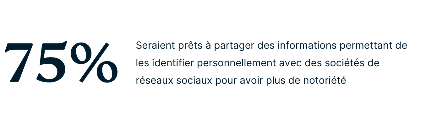 Bien qu'ils soient conscients des nombreux risques liés aux réseaux sociaux, les membres de la génération Z sont prêts à renoncer à des informations permettant de les identifier personnellement en échange de plus de notoriété sur les réseaux sociaux, d'un plus grand nombre de followers ou pour avoir accès à de nouvelles fonctionnalités.