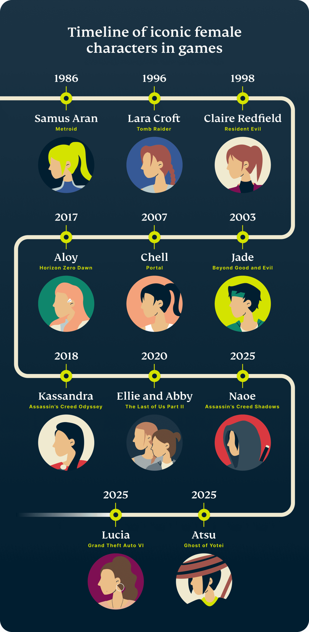 Aujourd'hui, les protagonistes féminines dirigent certains des plus grands jeux de l'industrie, et leurs histoires sont plus riches que jamais.