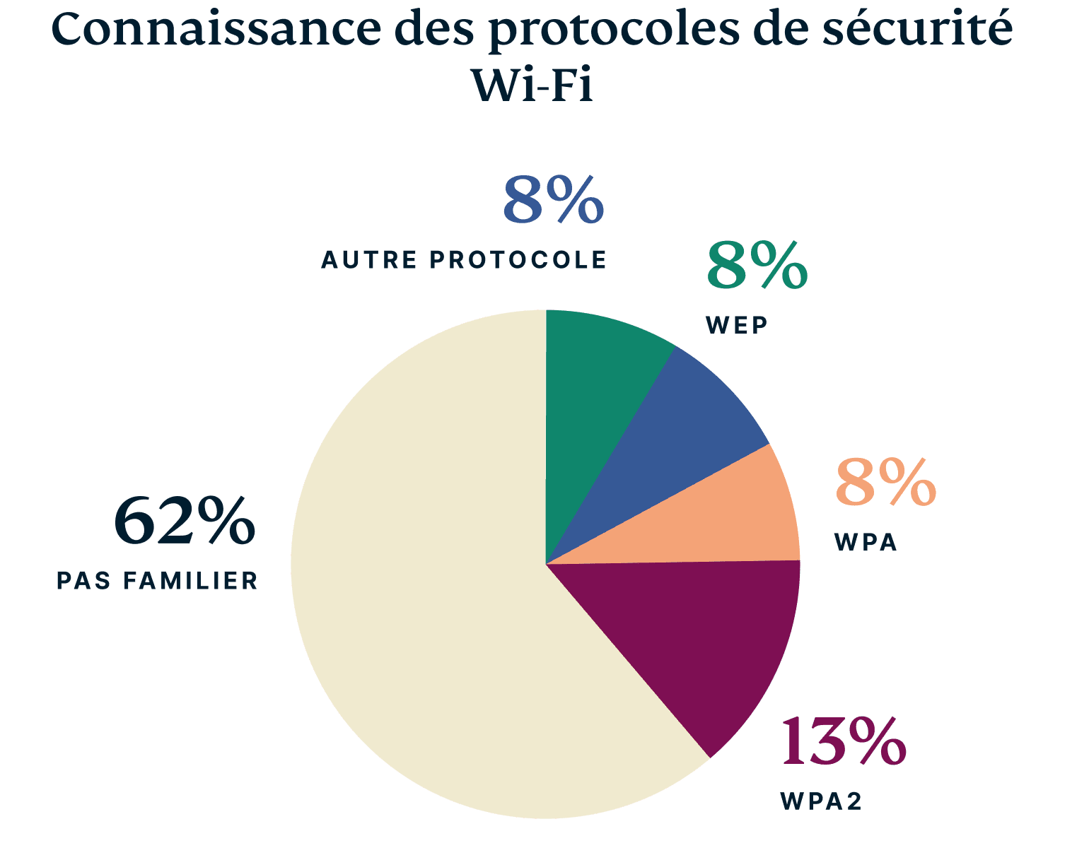 62 % des personnes interrogées ont déclaré ignorer ce que sont ces protocoles de chiffrement, ce qui est plutôt inquiétant ! Cela pourrait conduire à la généralisation des configurations de sécurité vulnérables et des réseaux exposés à toutes sortes de menaces ou d'atteintes à la sécurité des données personnelles.