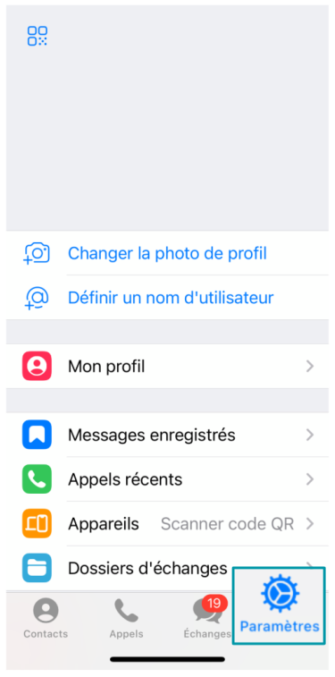 1. Rendez-vous dans Paramètres dans le coin inférieur droit.