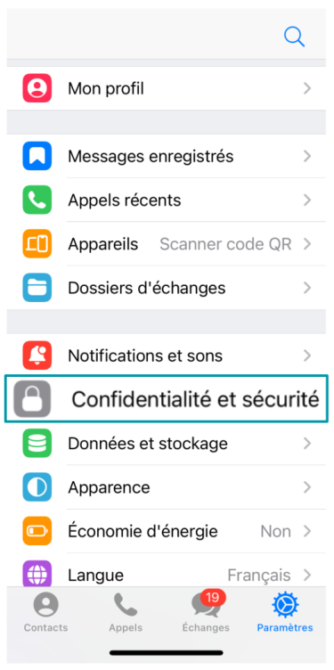 2. Appuyez sur Confidentialité et sécurité. Vous pouvez ensuite définir qui peut voir votre numéro de téléphone, votre photo de profil et votre présence en ligne. En limitant l’accès à Mes contacts plutôt qu’à Tout le monde, vous pouvez préserver la confidentialité de vos informations personnelles.