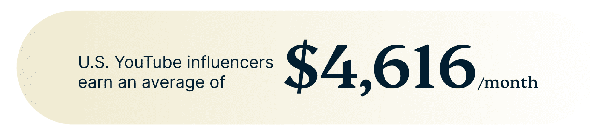 YouTube rimane una delle piattaforme più redditizie. I creatori su YouTube negli Stati Uniti guadagnano in media 4.616 dollari al mese tramite AdSense (con 20.000 visualizzazioni al giorno e un tasso di coinvolgimento del 50%), e con sponsorizzazioni e abbonamenti, quel numero sale ancora di più.