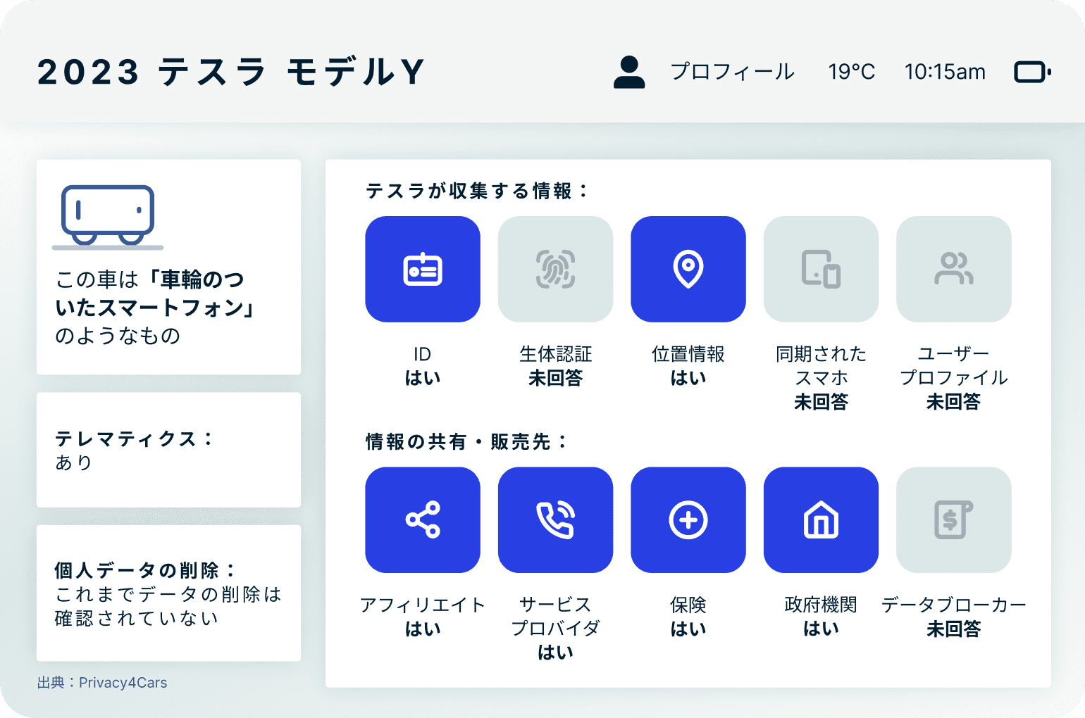 実際、Mozilla Foundationによる最近の調査では、プライバシーに関してこれまで評価した中で最も対策が不十分な製品ジャンルとして、自動車が挙げられています。憂慮すべき調査結果には、個人データの過剰な収集、広範なデータ共有、ユーザーによる情報管理の著しい欠如などが含まれています。この状況は、自動車が収集するデータのプライバシーに関するより明確な規制が緊急に必要であることを浮き彫りにしています。