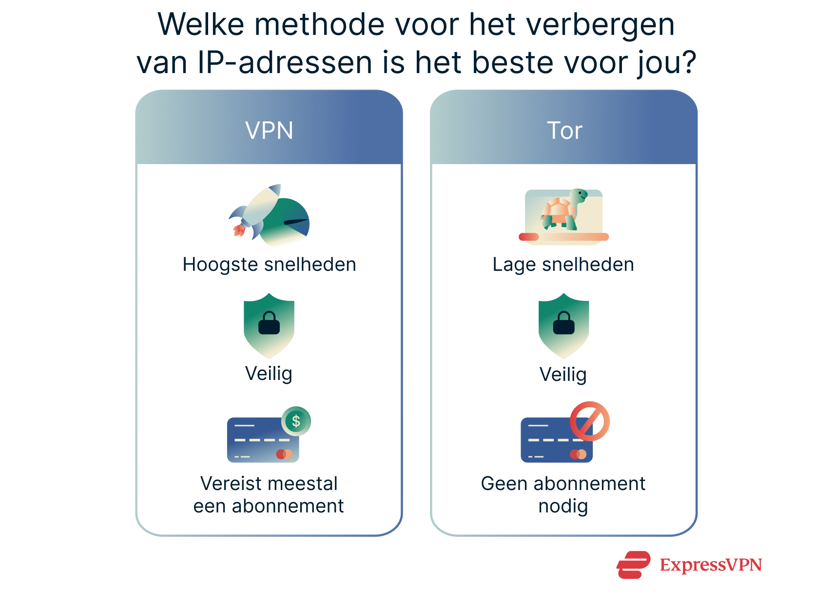 Dat kan, maar de alternatieve methoden om je IP-adres te verbergen zijn niet zo effectief. Het gebruik van het Tor-netwerk leidt bijvoorbeeld tot aanzienlijk lagere verbindingssnelheden. Bovendien versleutelt Tor je verkeer alleen binnen zijn eigen netwerk. Dat betekent dat je internetprovider wel kan zien dat je met Tor verbonden bent, maar niet weet welke websites of diensten je bezoekt zodra je eenmaal binnen het netwerk bent.