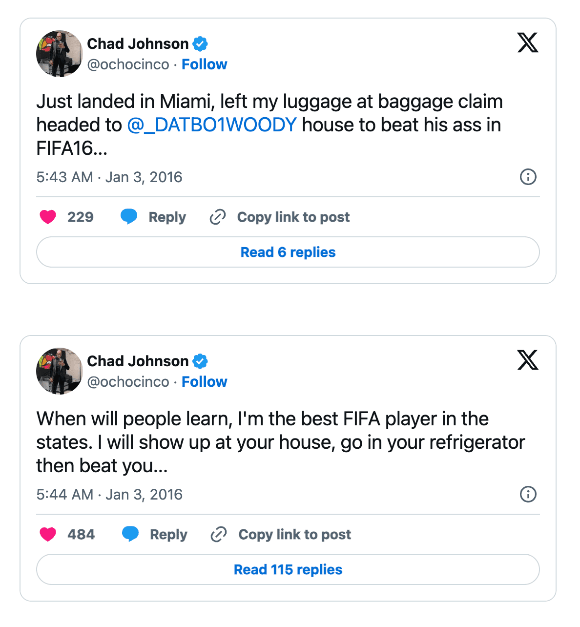 Johnson, znany również jako OchoCinco, jest nie tylko znanym byłym graczem NFL, ale także znaczącą postacią w społeczności gamingowej. Po zakończeniu kariery piłkarskiej Johnson przeniósł swojego ducha rywalizacji do świata gier wideo, osiągając szczególne sukcesy w takich grach jak Madden, Call of Duty i FIFA.