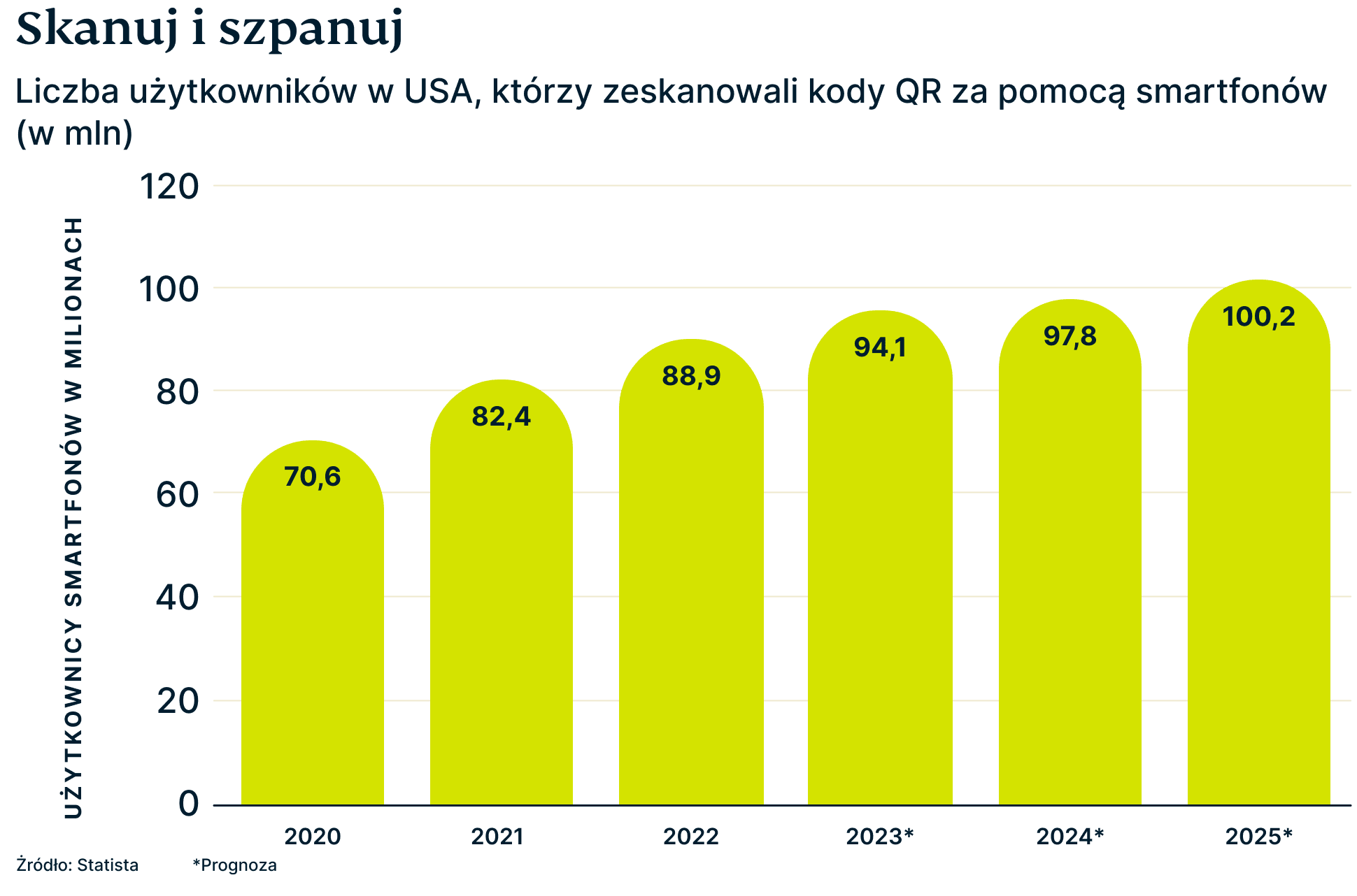 Według ostatnich badań Statista, odsetek użytkowników telefonów, którym zdarzyło się zeskanować kod QR wzrósł o 26% w ciągu ostatnich dwóch lat, co potwierdza, jak bardzo ta technologia przyjęła się w społeczeństwie.