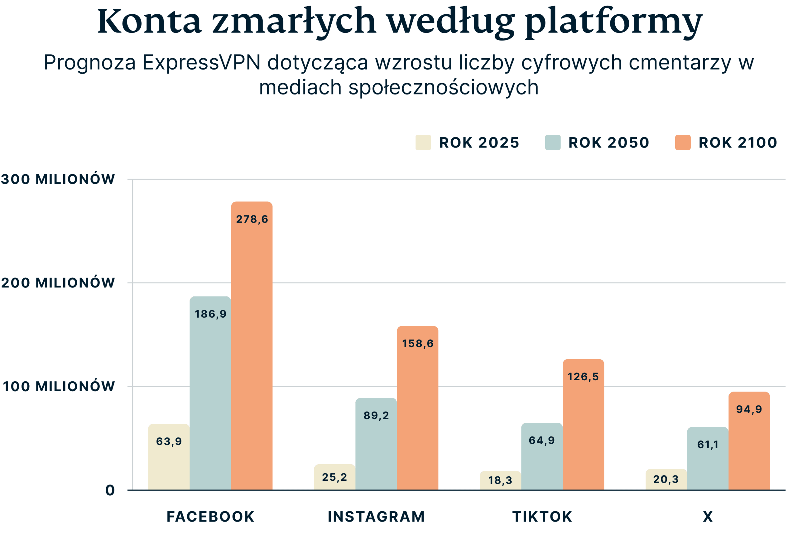 - W szczególności wyróżnia się sytuacja w Stanach Zjednoczonych, gdzie do 2100 roku spodziewamy się 659 milionów kont zmarłych, czyli prawie dwukrotnie więcej niż wynosi populacja tego kraju.