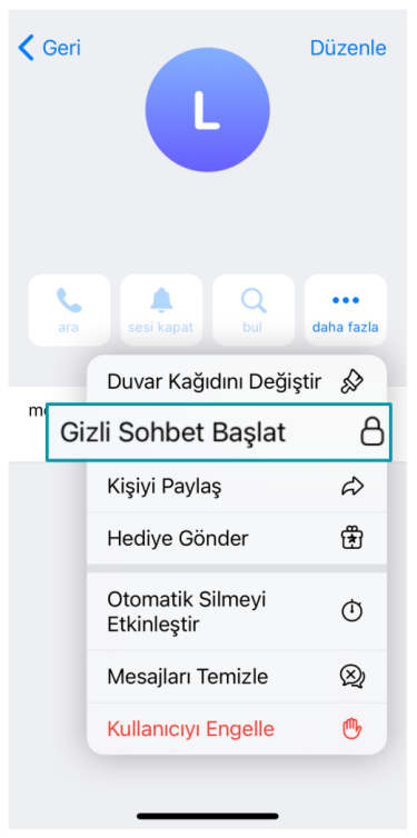 3. Gizli Sohbet Başlat seçeneğine tıklayın.