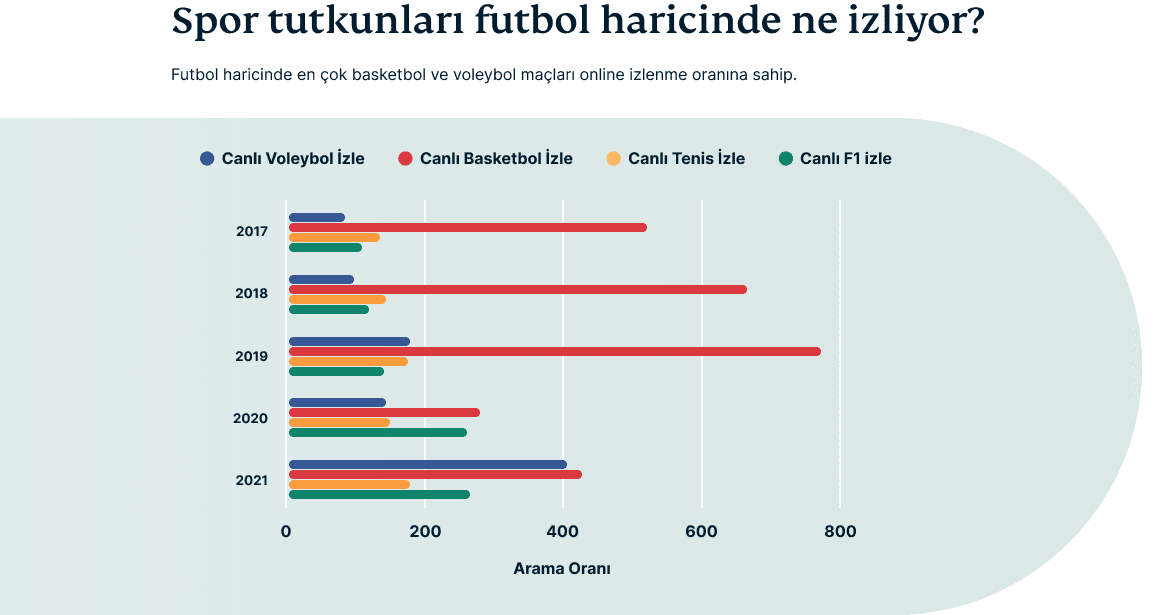 Bahsettiğimiz gibi, Türkiye’de futbolun köklü bir spor dalı olduğu yadsınamaz bir gerçek fakat diğer spor dallarını online izlemeye karşı olan ilgi de büyük ve biz bunu da gözler önüne sermek istedik.