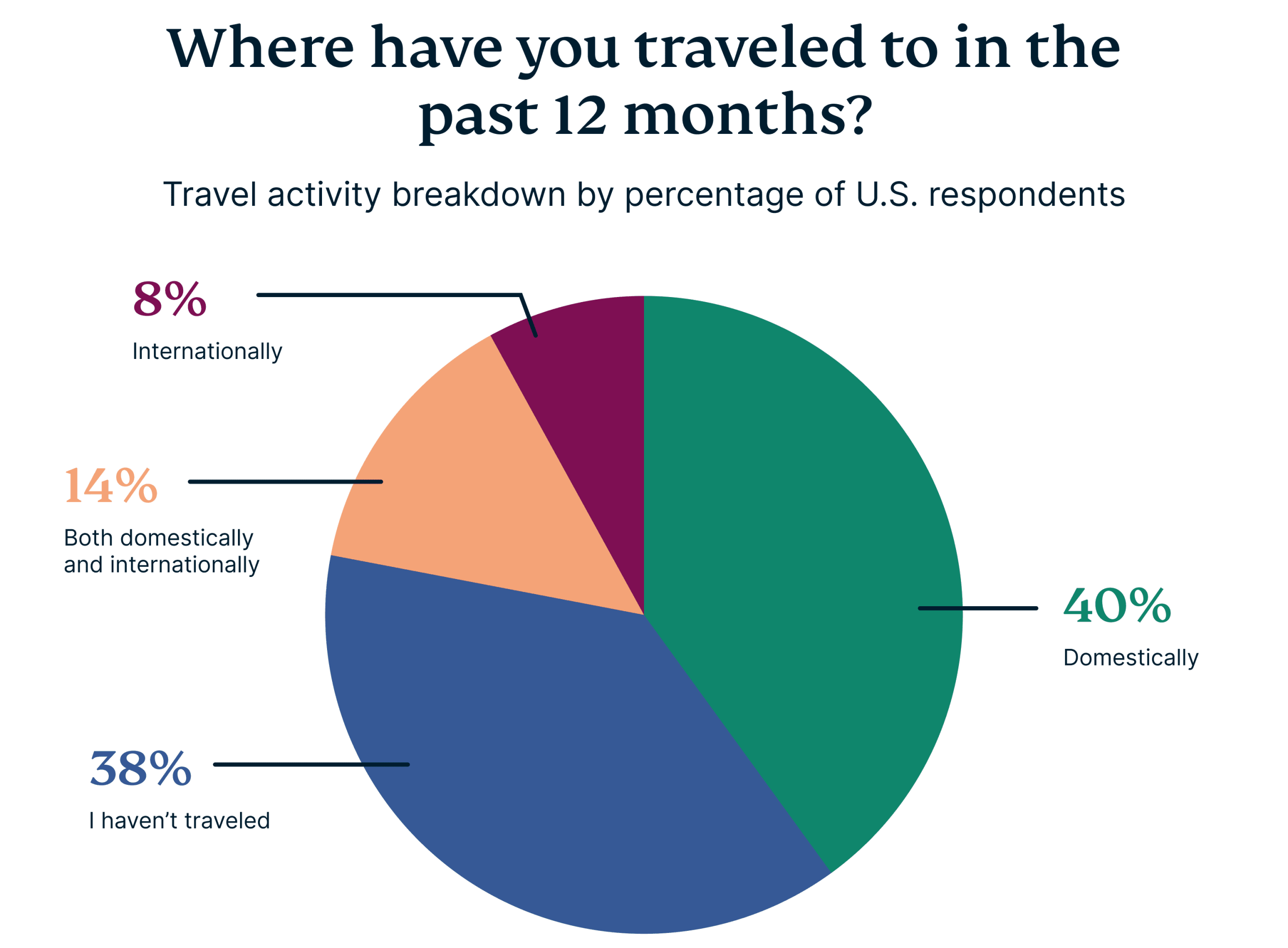 When surveying 2,000 Americans about their last 12 months of travel, we found that 40% explored only within the U.S., 8% only ventured abroad, and 14% experienced the best of both worlds. This enthusiasm for travel not only highlights our love for discovery but also sets the stage for how these adventures are shared: digitally.