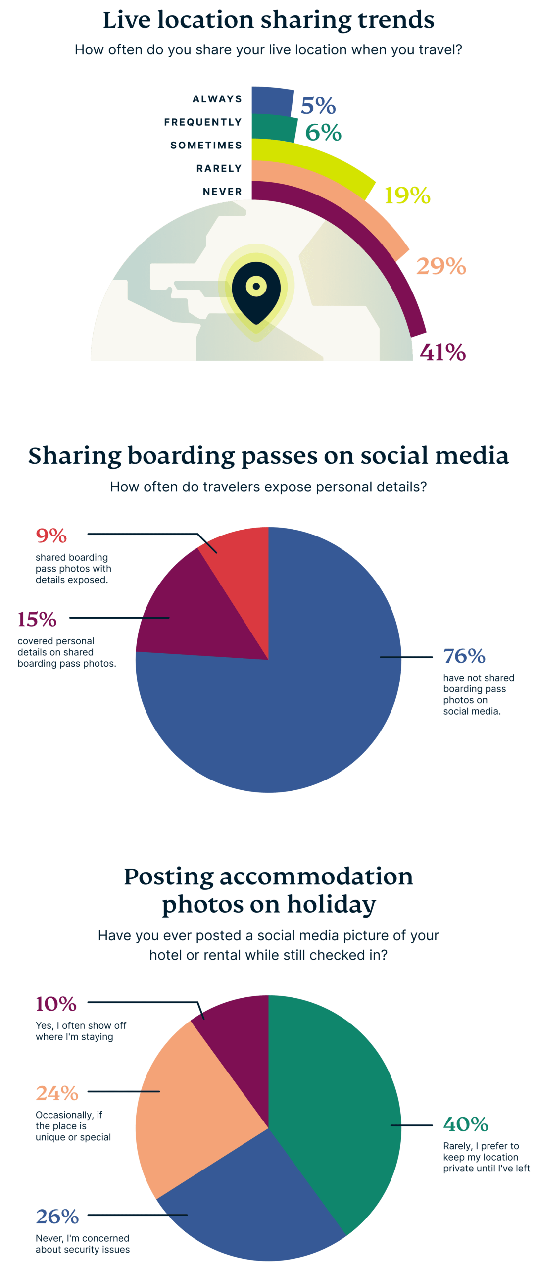 While keeping friends and family updated is the main reason people share their travel experiences online, the act of sharing sensitive information like boarding passes, location, or details about accommodations on a public platform can pose significant risks.