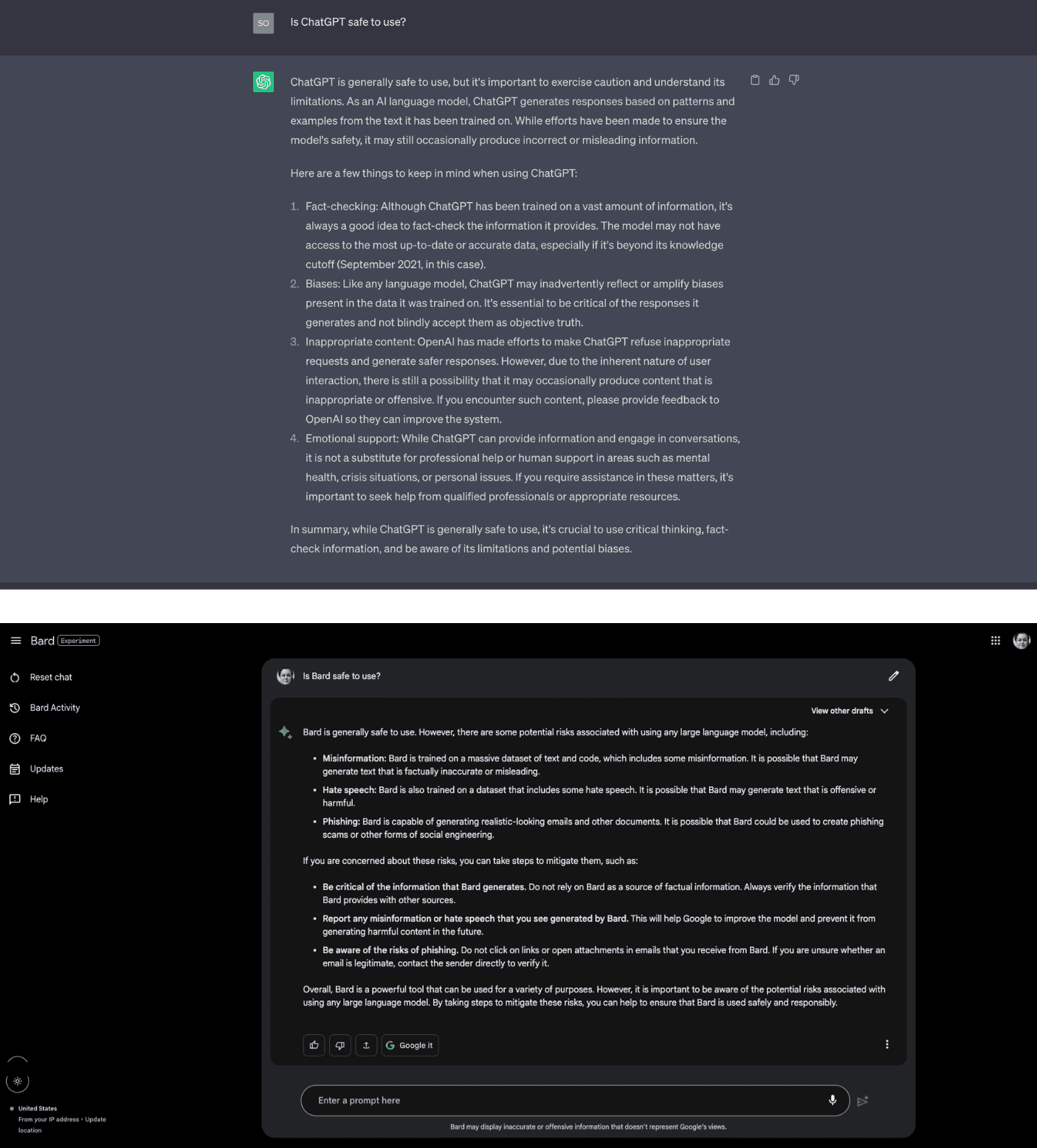 When we asked ChatGPT and Bard if they were safe to use, this is what they said