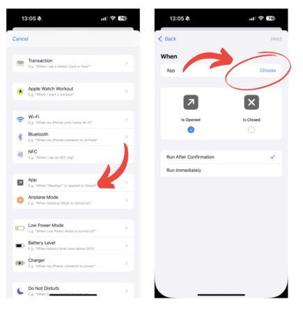- Tap App, then tap Choose. Make sure the Is Opened option is selected.