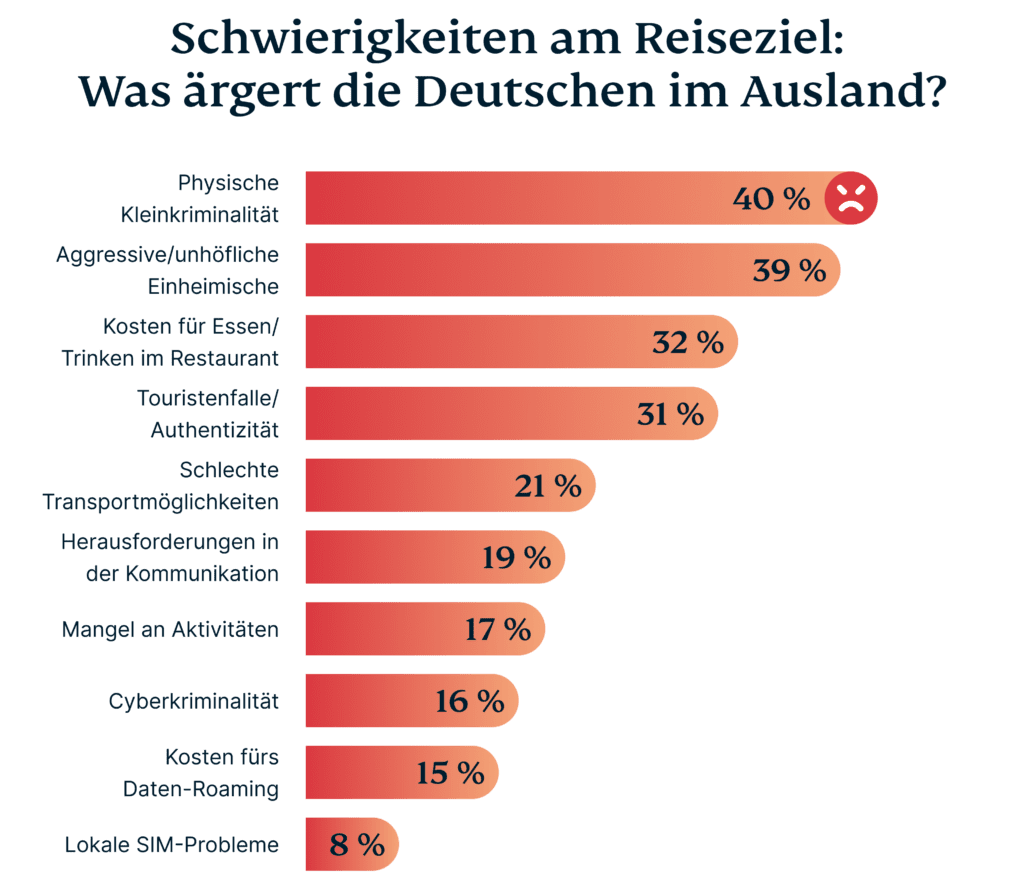 Kleinkriminalität und die Einstellung der Einheimischen führen die Liste der lästigsten Probleme am Reiseziel an