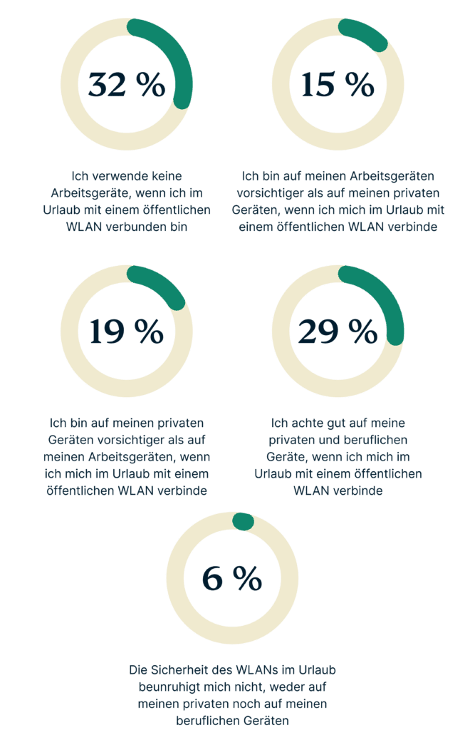 Obwohl 69 Prozent der deutschen Nutzer ihre Sorge darüber ausdrücken, dass ihre Online-Aktivitäten über öffentliches WLAN überwacht werden, und 16 Prozent Cyberkriminalität als Urlaubssorgen anführen, verlässt sich eine hohe Zahl von Nutzern weiterhin auf diese Netzwerke, um in Verbindung zu bleiben.