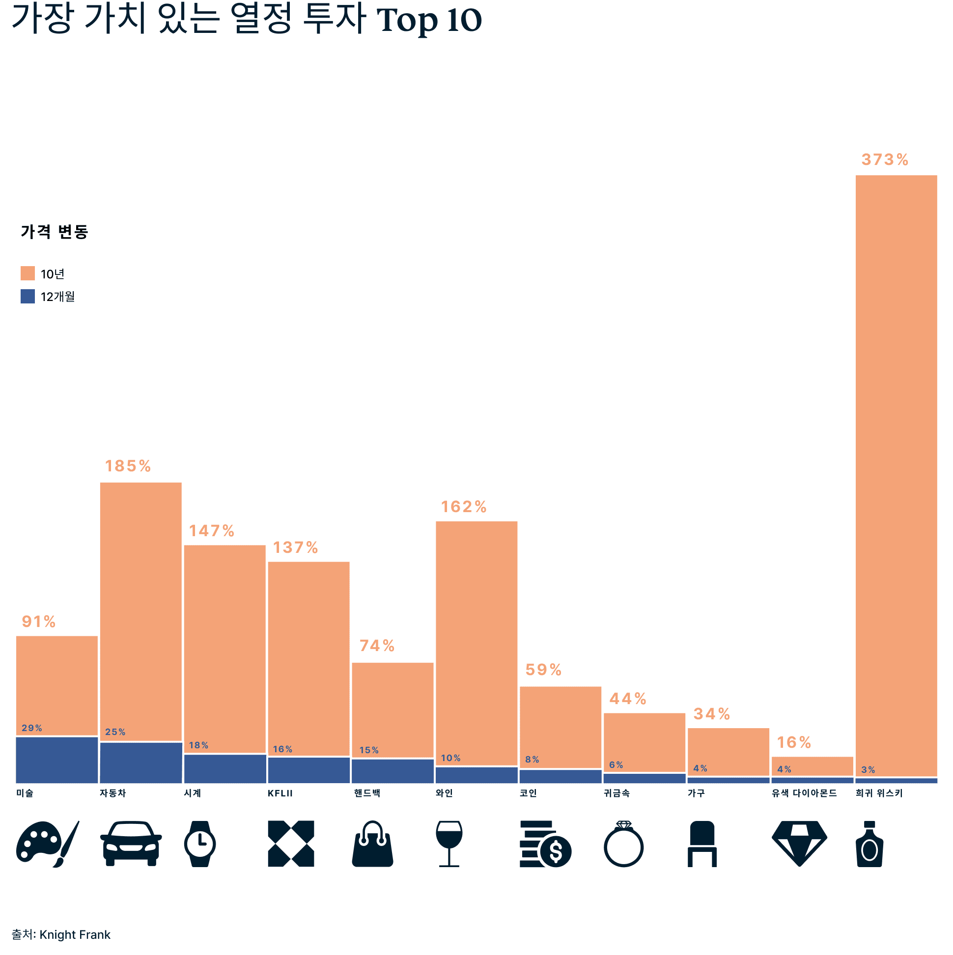 - 희귀 위스키, 미술품, 명품, 자동차와 같은 열정 투자는 비트코인에 비해 상대적으로 안정적이며 높은 수익률을 기대할 수 있습니다.