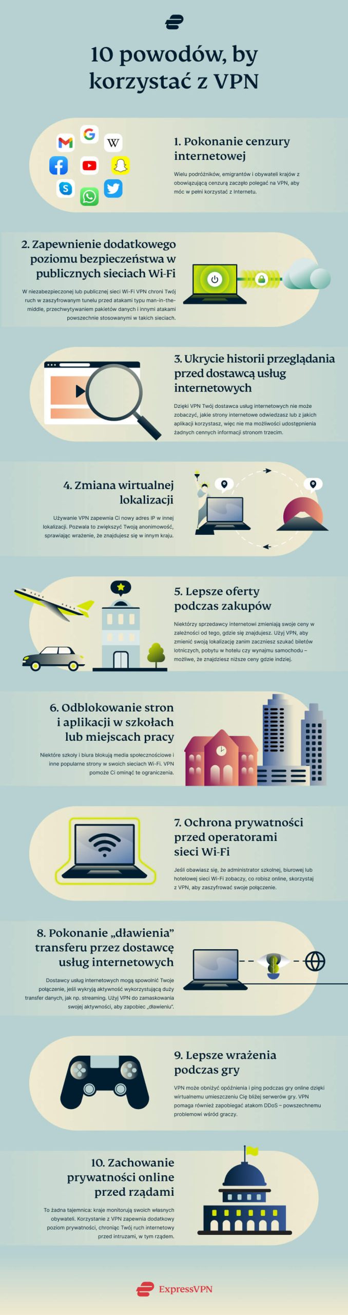 W jednej praktycznej infografice zebraliśmy 10 najważniejszych powodów, by korzystać z VPN. Znasz inne powody? Podziel się nimi w komentarzach!